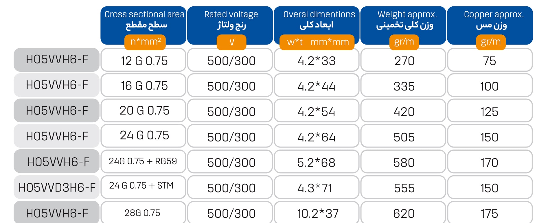مطابق با استاندارد ISIRI607-6 ایران یا همان استاندارد IEC60227 می باشد.